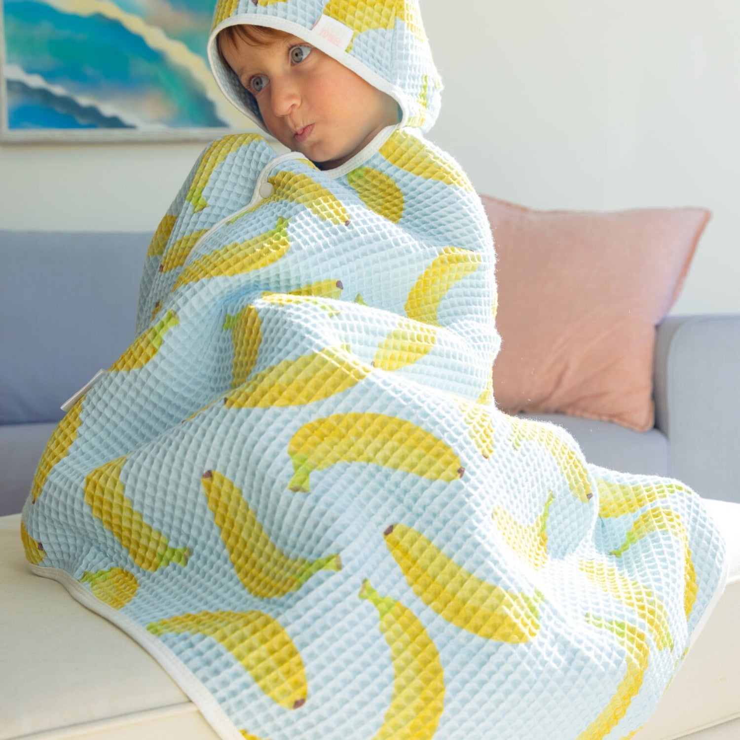 THE BEST TODDLER TOWELBetter than I ever expected! The waffle cotton is so soft! The print is SUPER FUN! And the buttons and hood adorably GENIUS!! My 2 boys wear them till bed time! Highly highly recommend for your kids or a gift!! Best kids towel on the market! Katie C