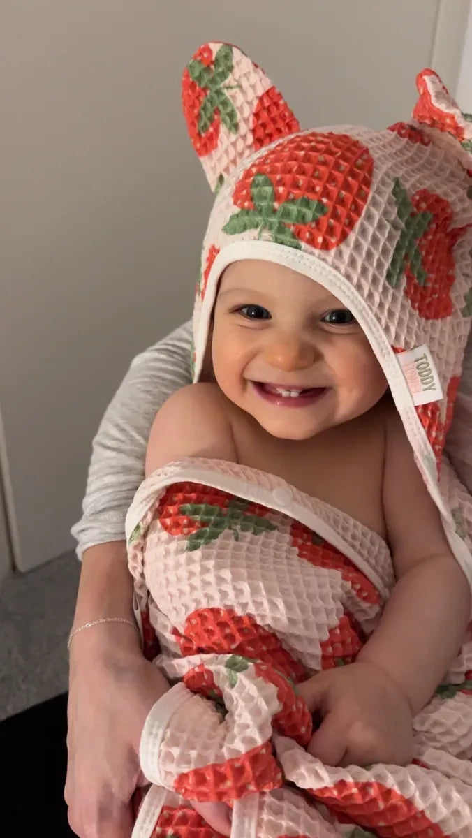 Highly recommend!We absolutely love our Strawberry Toddy Towel. Dries so quickly & little bubs loves it. Mimma